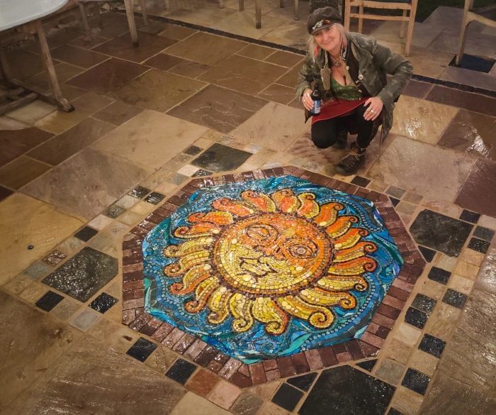 Unveiled at a patio party in the August, the Barsham Sun Mosaic was warmly received. Now a centrepiece of home and garden, it stands as an example of Carolyn’s art and vision, a revival of memory, but above all a celebration and inspiration of enduring design, skill, and creativity.
