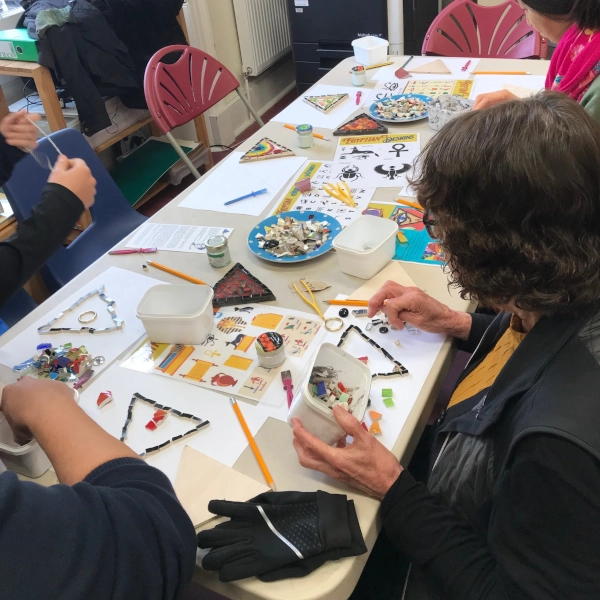 Each workshop began with the offer of inspiration in the form of Egyptian colour, symbols, and hieroglyphs, though participants were encouraged to follow their own ideas. Creativity, storytelling, and personal reflection were key, with each tile capturing something unique—from family history and local identity to abstract design or playful motifs.