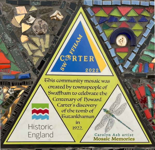In 2022, The Swaffham Cultural Consortium—led by Sue Gattuso of Swaffham Museum and supported by Historic England—commissioned a community mosaic pyramid as part of the Carter22 celebrations, marking 100 years since Howard Carter's discovery of Tutankhamun’s tomb. Initially envisioned as a statue, the idea evolved into something more inclusive: a collaborative artwork inviting a broad community involvement and creative interpretation of Howard Carter’s legacy.