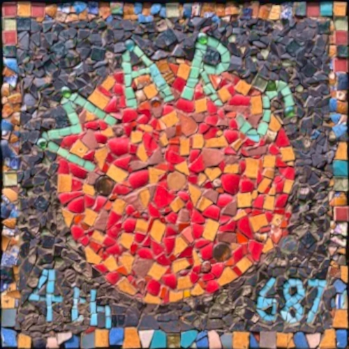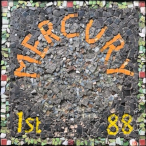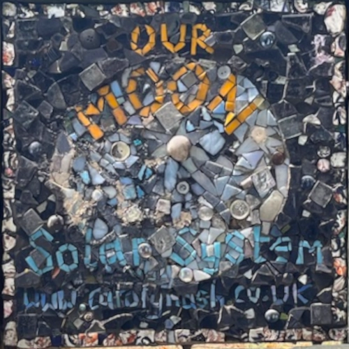 Carolyn ensured the children’s mosaics were finished to withstand the weather, in spite of pigeons and lime trees, carefully grouting each one before they were set into a frame marking the planets’ order from the Sun. As a personal gesture Carolyn gifted the Moon, completing the journey from the Sun, and from Mercury to Neptune. From its very first days the installation has invited people to stop, look, and wander through a miniature cosmos beneath the trees.