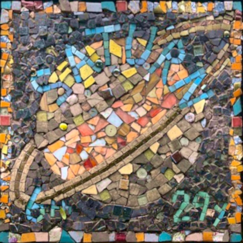 The project transformed classrooms into arts studios where pupils worked directly. Rather than presenting a rigid template, Carolyn encouraged imagination within the framework of planetary form—so Venus shone in soft tones, Saturn gained its rings, and Mars burned with terrestrial reds. Many of the children had never touched mosaic before, yet the results spoke of bold choices and unselfconscious creativity.